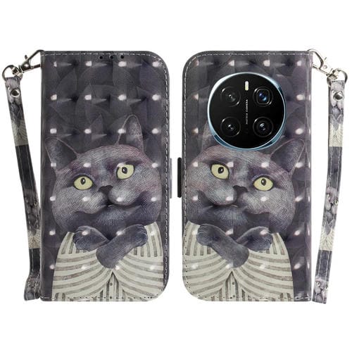 Funda de Cuero con Tapa Horizontal 3D para Honor Magic7 Pro (Hug Cat)