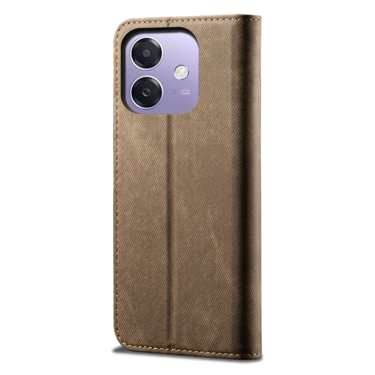 Funda de Cuero con Tapa Horizontal Estilo Casual con Textura Vaquera para Oppo A3X 5G (Caqui)