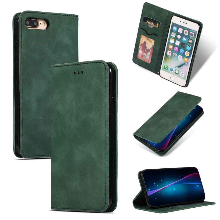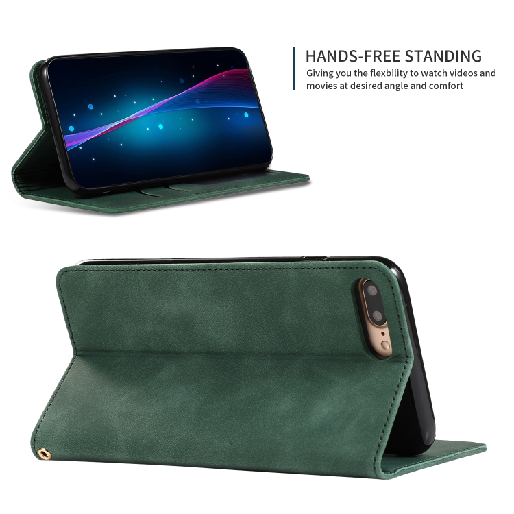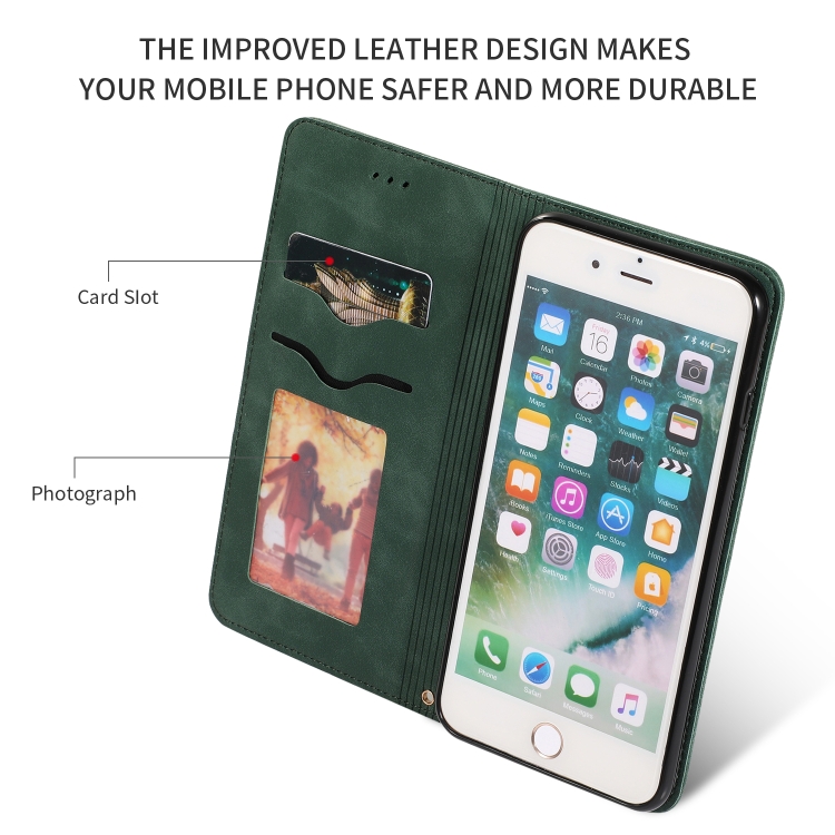 Funda de Cuero con Tapa Horizontal Magnética Retro Skin Feel Business para iPhone 8 Plus / 7 Plus (Verde Militar)