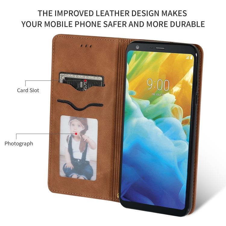 Funda de Cuero con Tapa Horizontal Magnética Retro Skin Feel Business para LG Stylo 5 (Marrón)