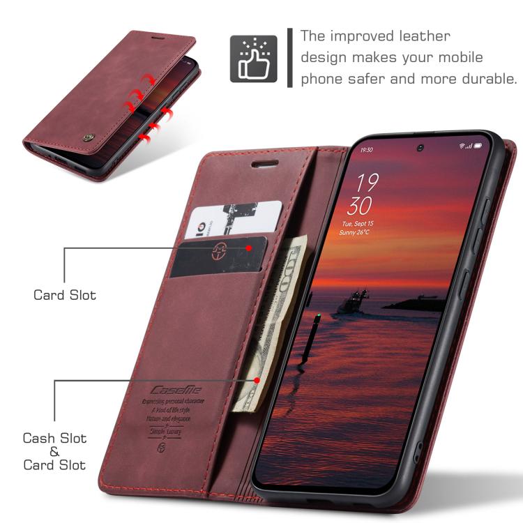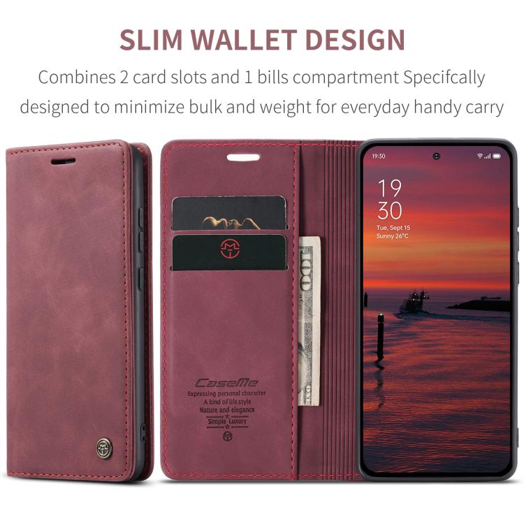 Funda de Cuero con Tapa Horizontal Multifuncional Caseme 013 para Oppo Reno13 Global (Roja)
