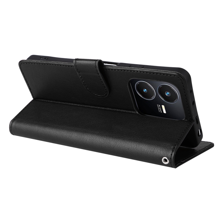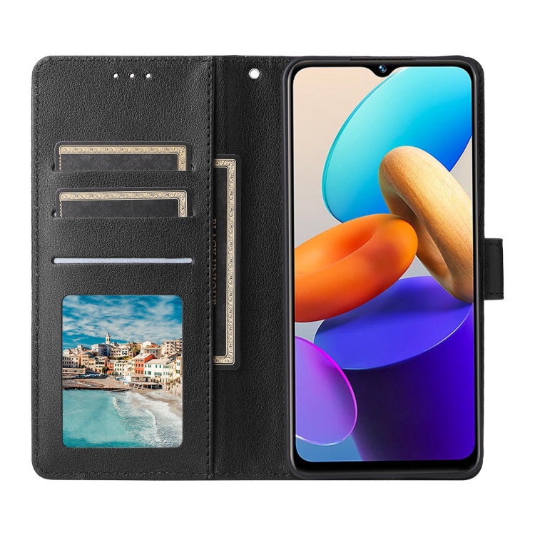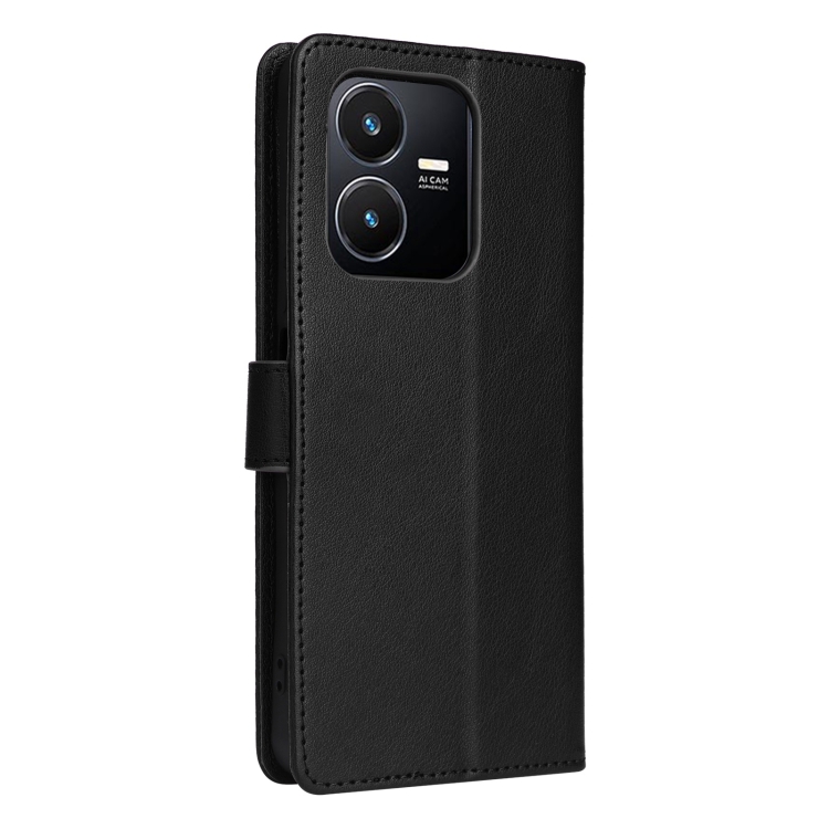 Funda de Cuero con Tapa Horizontal Multifuncional para Vivo Y22S 4G / Y22 4G 2022 con Ranura para Tres Tarjetas (Negro)