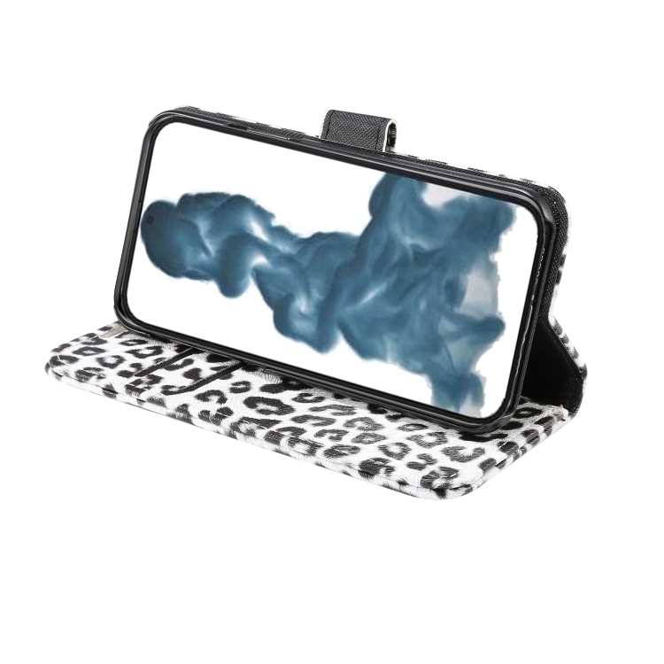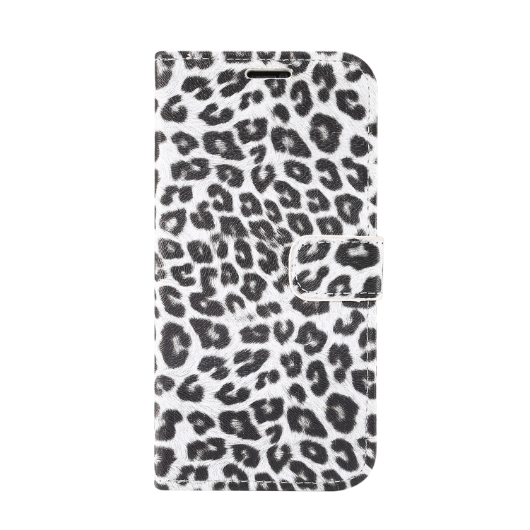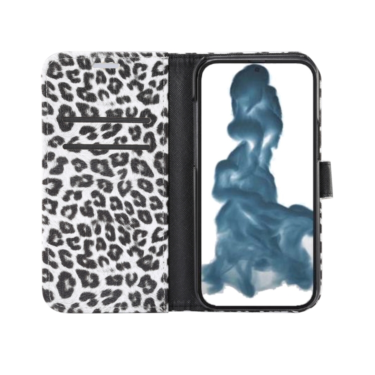Funda de Cuero con Tapa Horizontal para iPhone 14 con Patrón de Leopardo (Blanco)