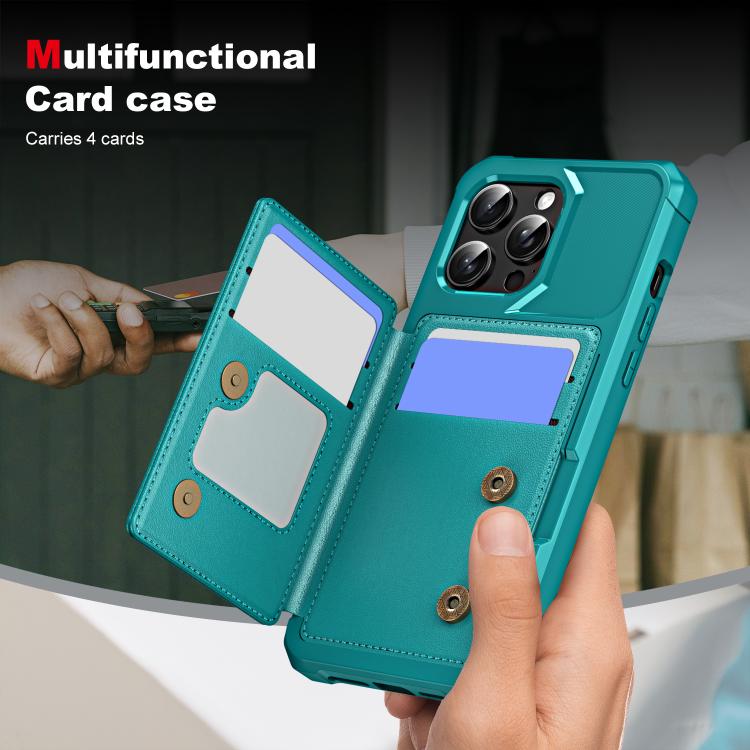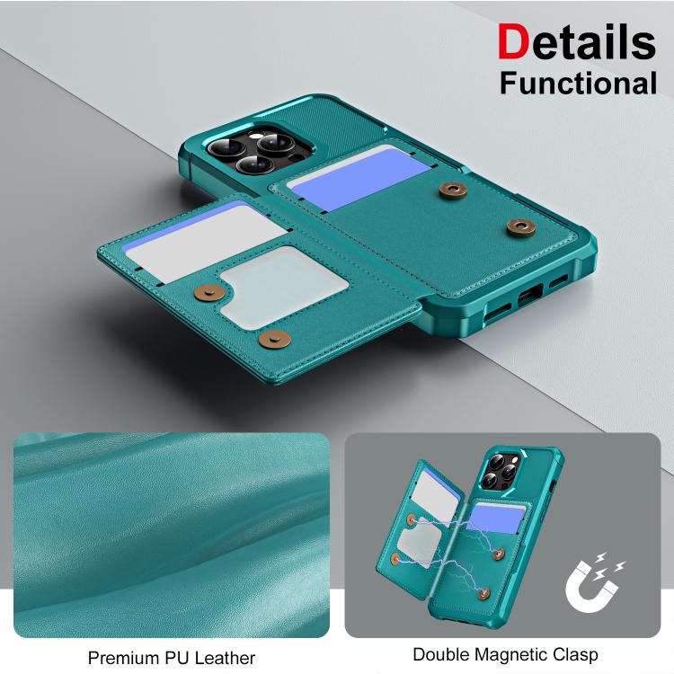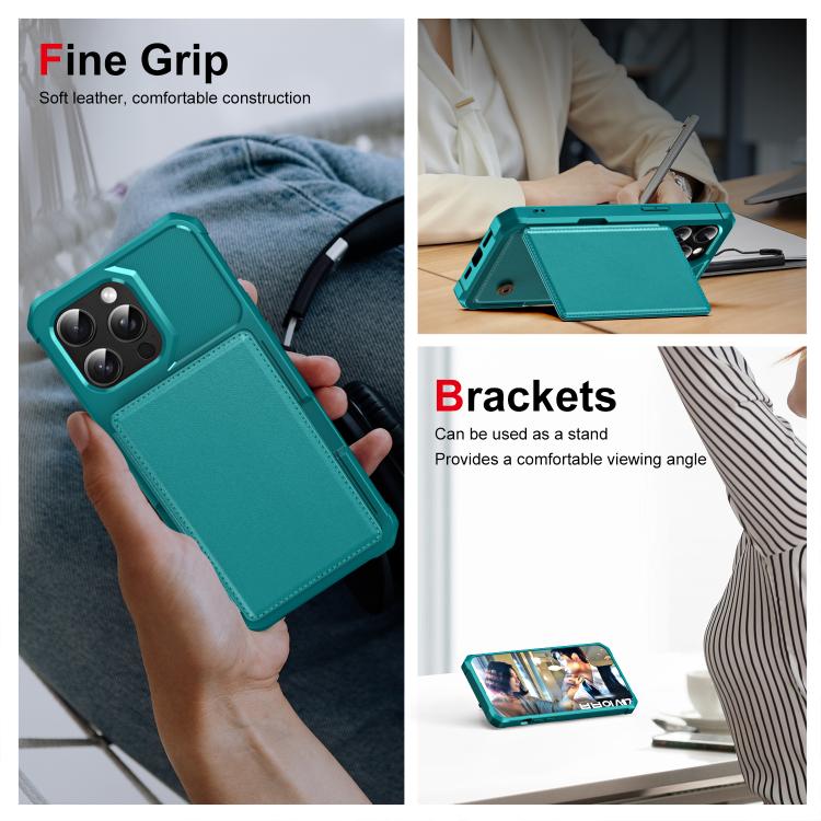 Funda de Cuero con Tapa Horizontal para iPhone 14 Pro con Tarjetero (Verde Cian)