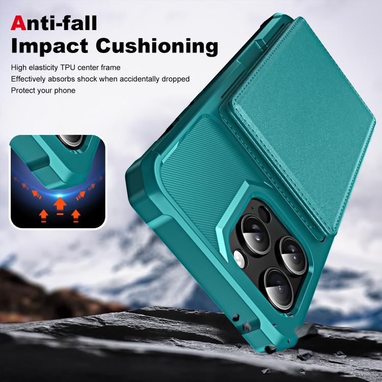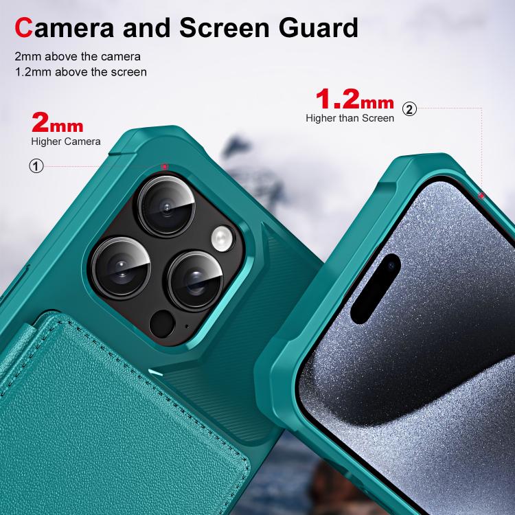 Funda de Cuero con Tapa Horizontal para iPhone 15 Pro Max Tarjetero (Verde Cian)