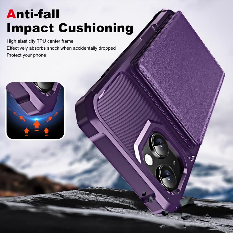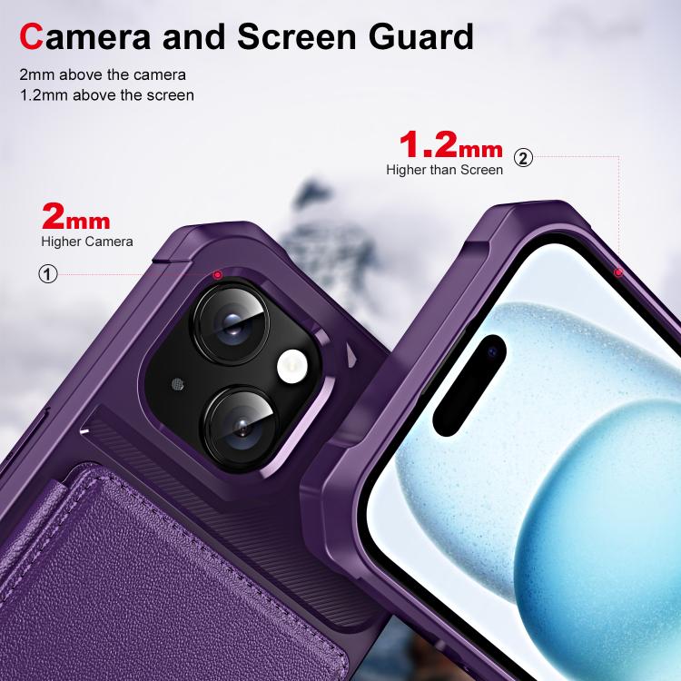Funda de Cuero con Tapa Horizontal para iPhone 15 Tarjetero (Morado)