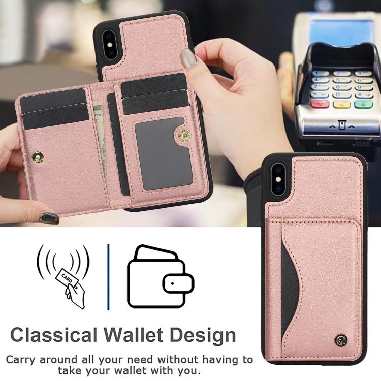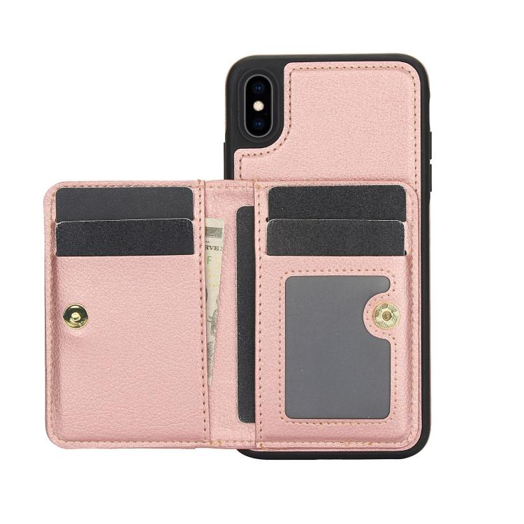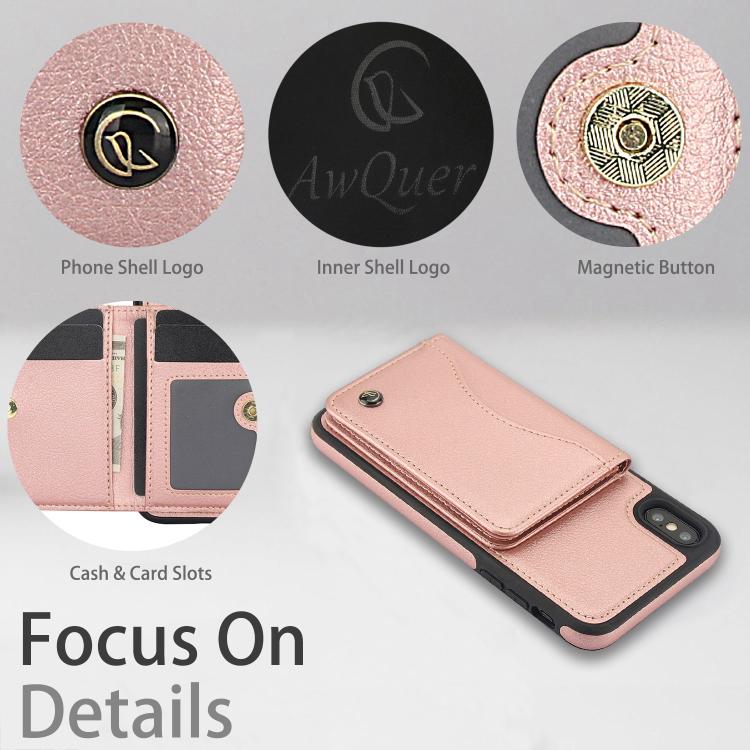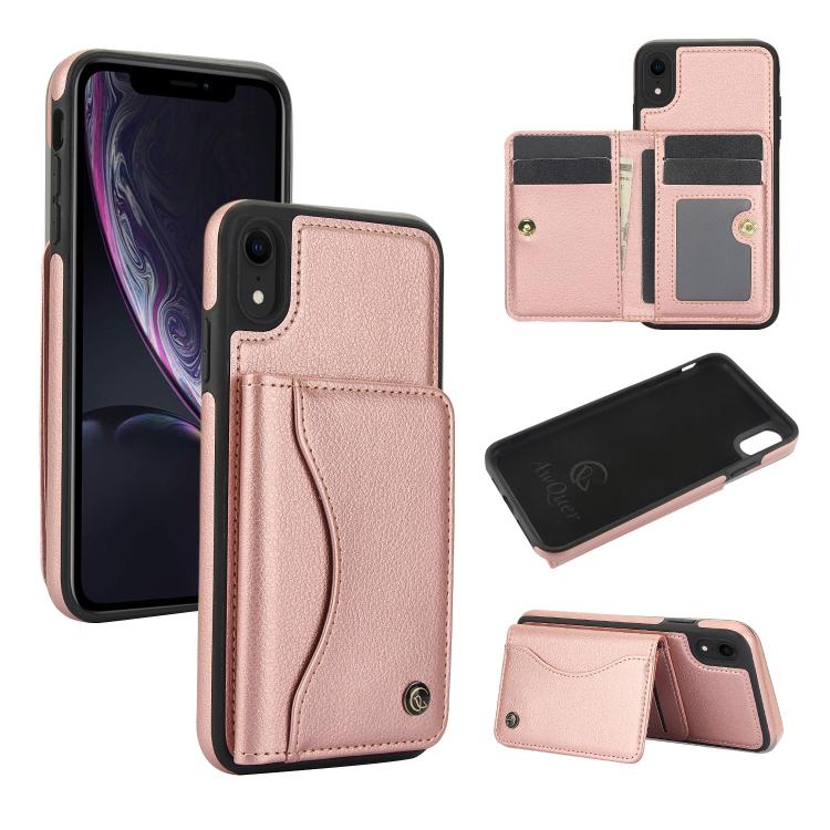 Funda de Cuero con Tapa Horizontal Awquer para iPhone Xr con Tarjetero (Oro Rosa)