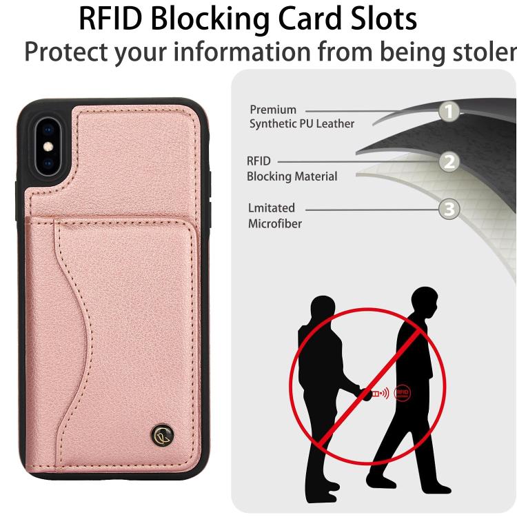 Funda de Cuero con Tapa Horizontal Awquer para iPhone Xs Max con Tarjetero (Oro Rosa)
