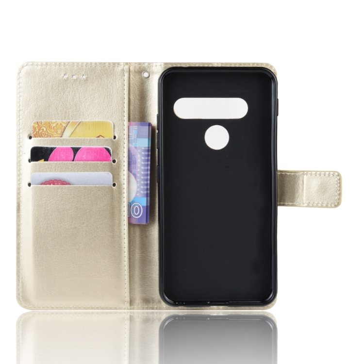Funda de Cuero con Tapa Horizontal Retro para LG G8S Thinq con Soporte y Ranuras (Dorado)