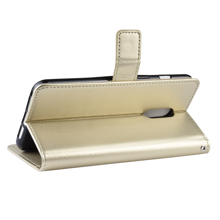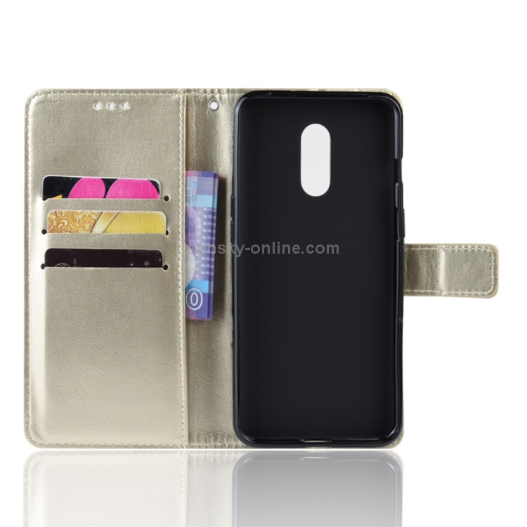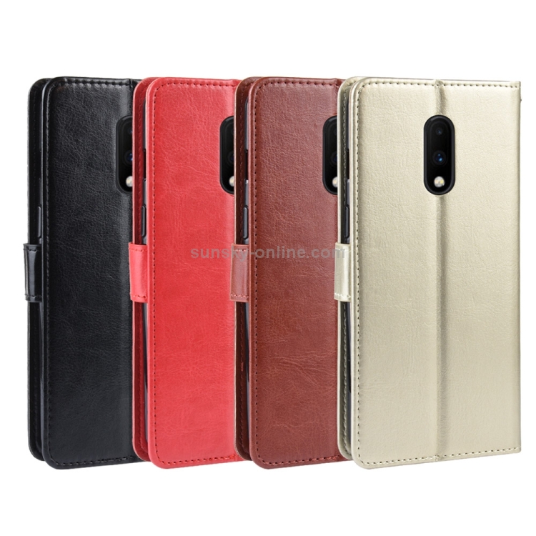 Funda de Cuero OnePlus 7 con Tapa Horizontal Retro, Soporte, Ranuras y Marco de Fotos (Dorado)
