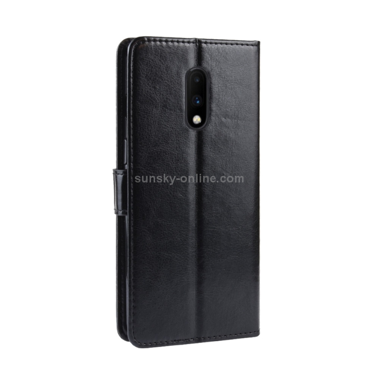 Funda de Cuero OnePlus 7 con Tapa Horizontal Retro, Soporte, Ranuras para Tarjetas y Marco de Fotos (Negro)