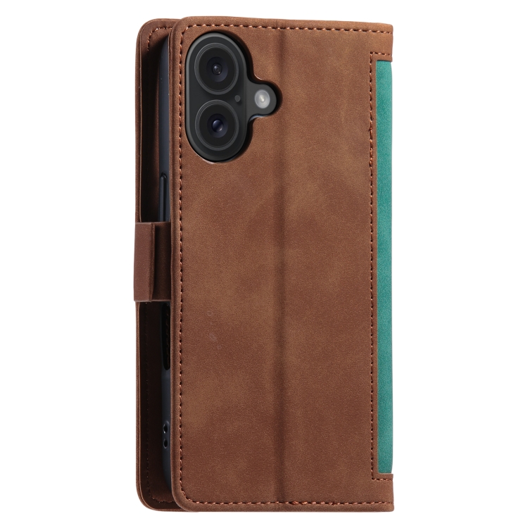 Funda de Cuero con Tapa Horizontal y Empalme Retro para iPhone 16 Plus (Verde)