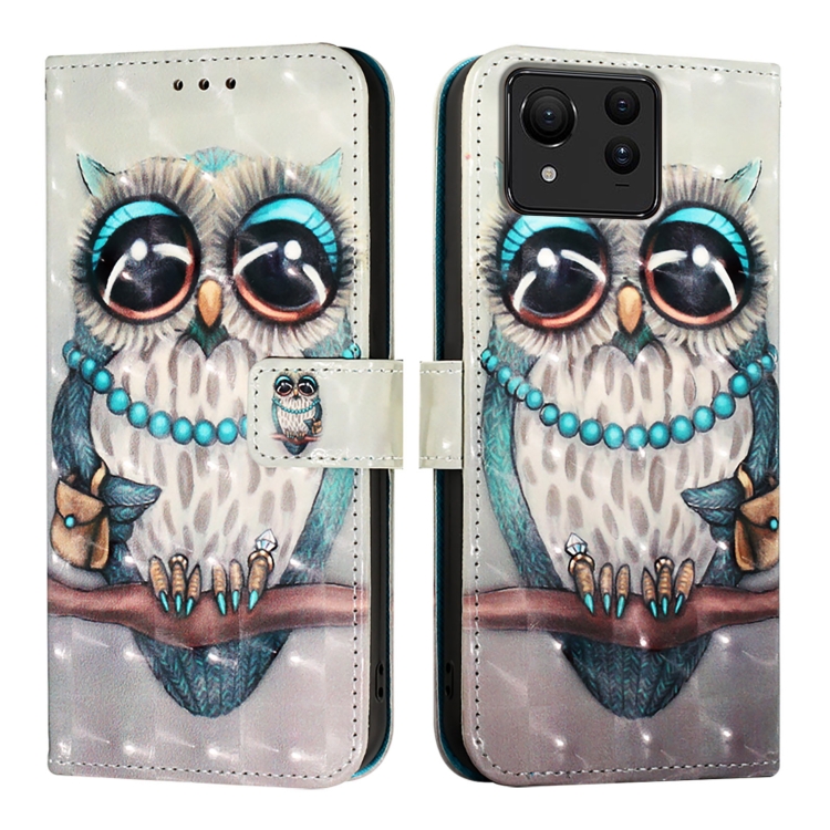 Funda de Cuero con Tapa Horizontal y Pintura 3D para Asus Zenfone 11 Ultra (Búho Gris)