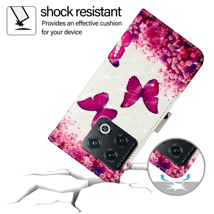 Funda de Cuero con Tapa Horizontal y Pintura 3D para OnePlus 10 Pro (Mariposa Rosa)