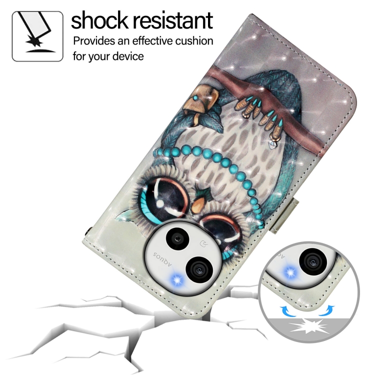 Funda de Cuero con Tapa Horizontal y Pintura 3D para Sharp Aquos Sense9 Plus (Gris)