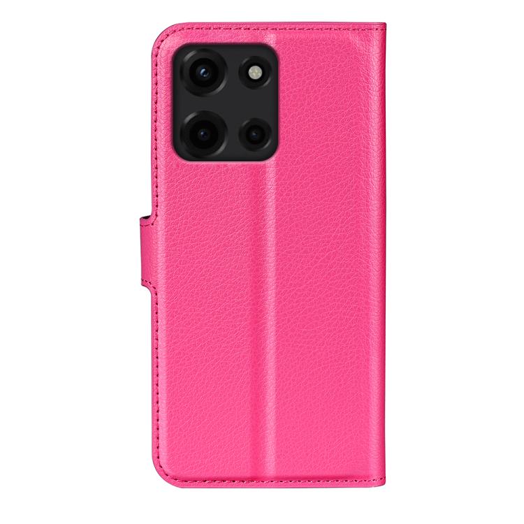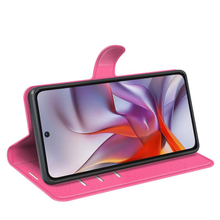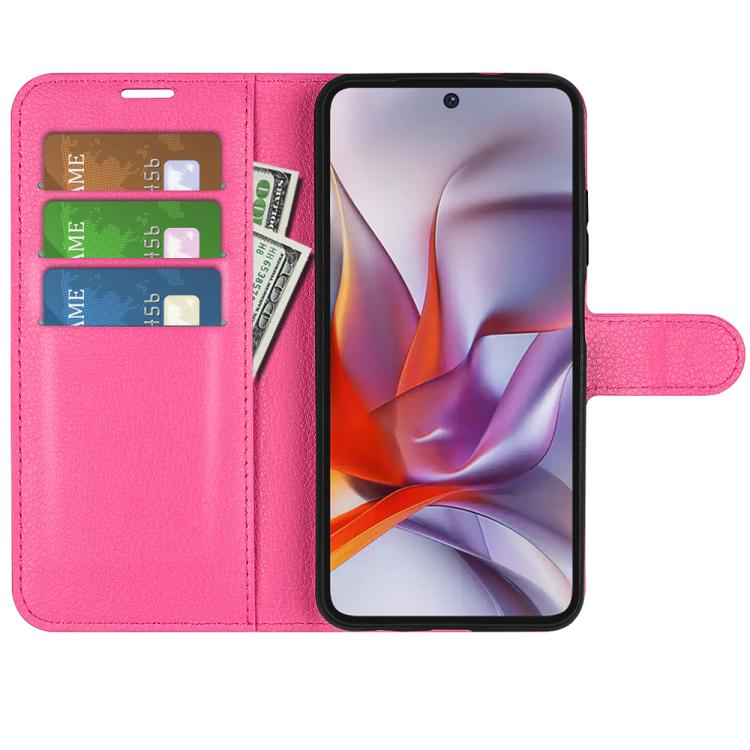 Funda de Cuero con Tapa Horizontal y Textura de Lichi para Motorola Moto G 5G (2025) con Soporte (Rosa Rojo)