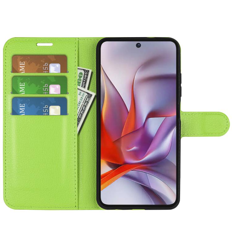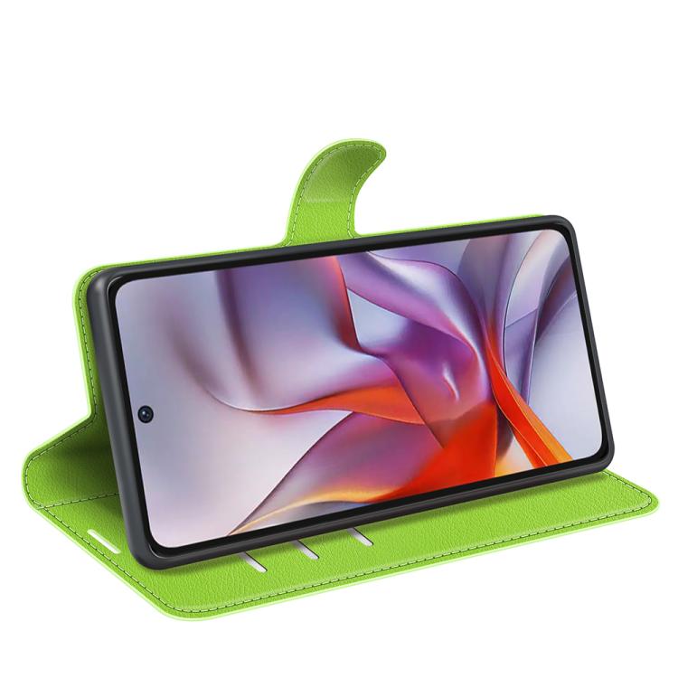 Funda de Cuero con Tapa Horizontal y Textura de Lichi para Motorola Moto G 5G (2025) con Soporte (Verde)
