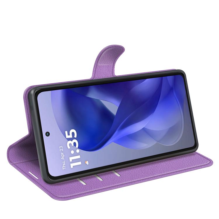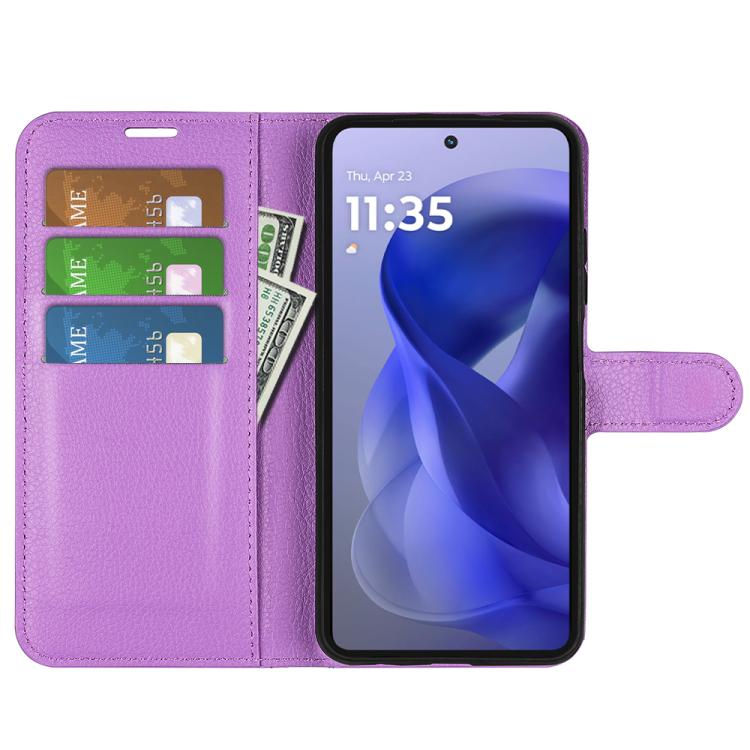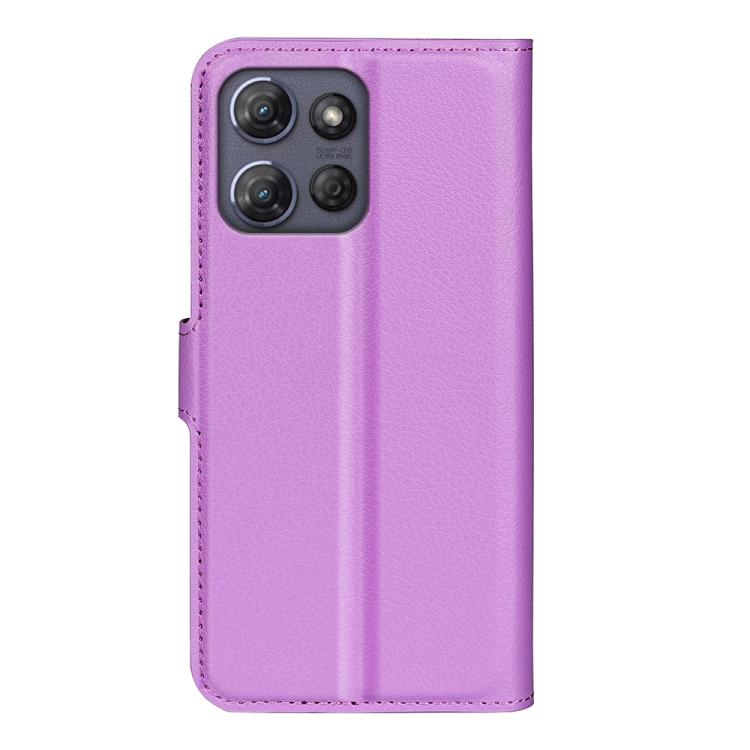 Funda de Cuero Motorola Moto G Power 2025 con Tapa Horizontal, Textura de Lichi y Soporte (Morado)