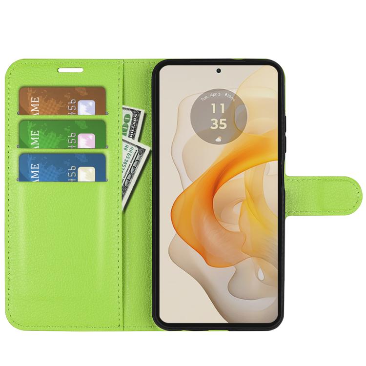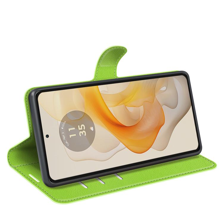 Funda de Cuero con Tapa Horizontal y Textura de Lichi para Motorola Moto G Stylus 5G (2024) con Soporte (Verde)