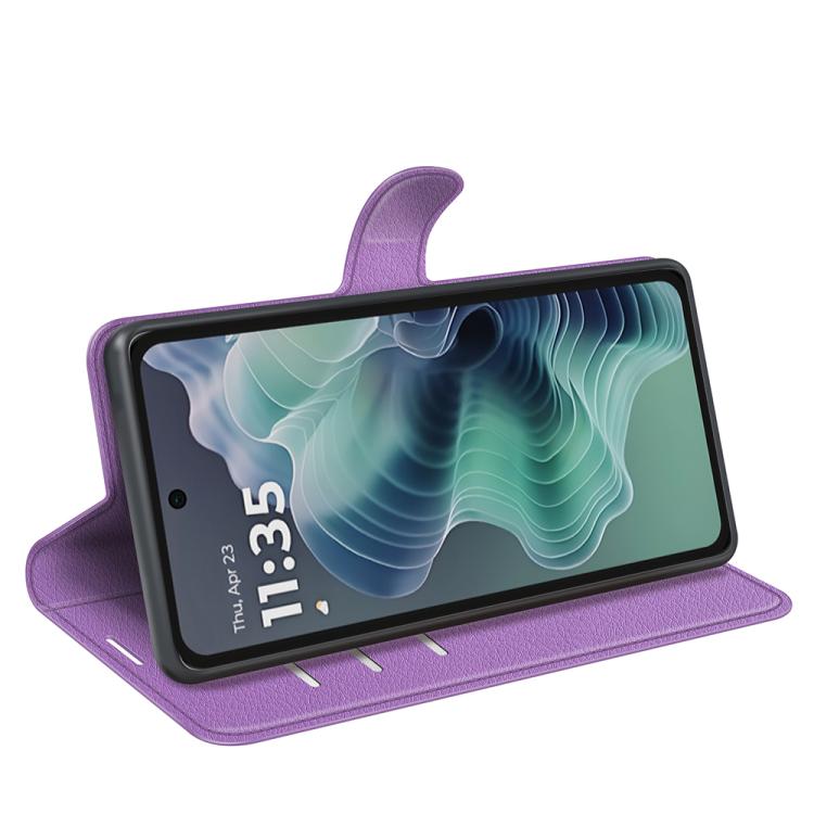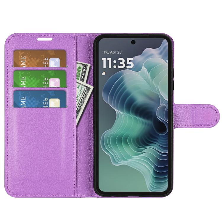 Funda de Cuero con Tapa Horizontal y Textura de Lichi para Motorola Moto G35 con Soporte (Morado)
