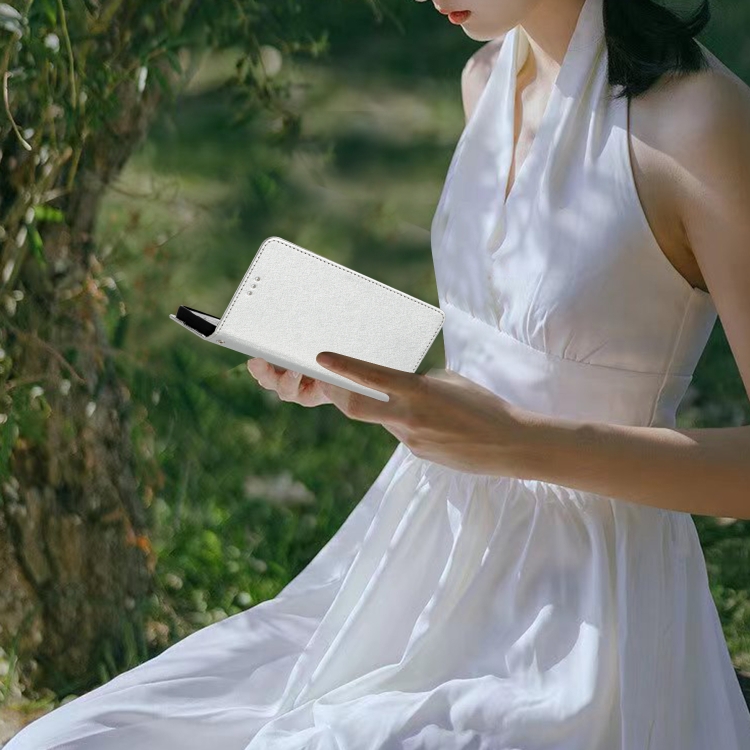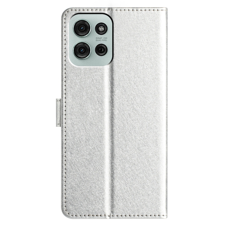 Funda de Cuero con Tapa Horizontal y Textura de Seda para Motorola Moto G75 (Plateada)
