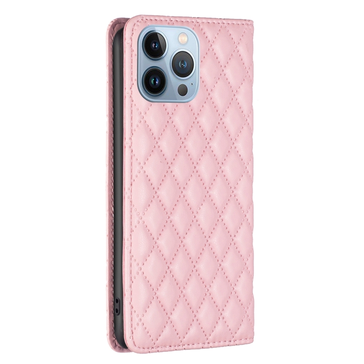 iPhone 13 Pro Diamond Lattice Magnetic Flip Leather Case (Pink)