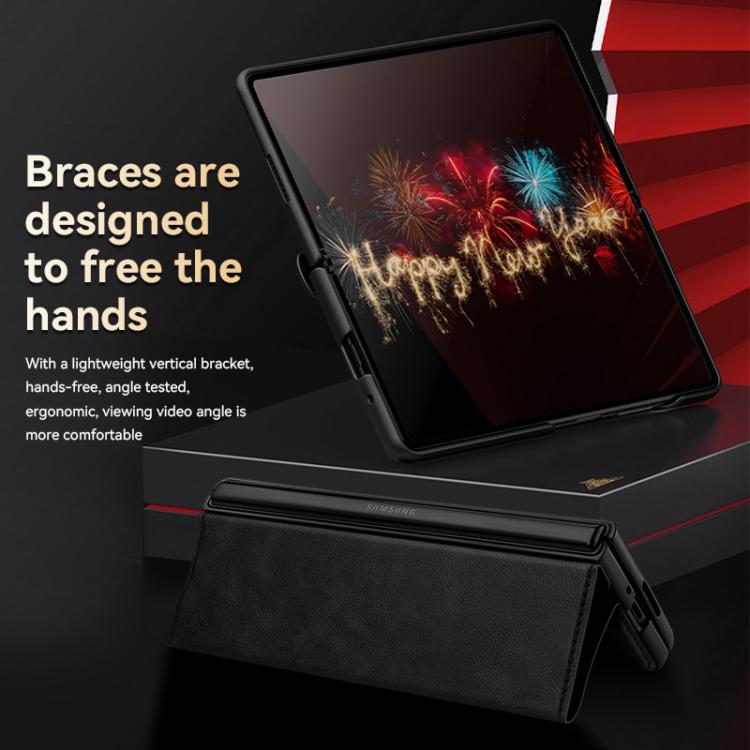 Funda de cuero con tapa magnética y cierre magnético SULADA para Samsung Galaxy Z Fold7 5G (marrón)