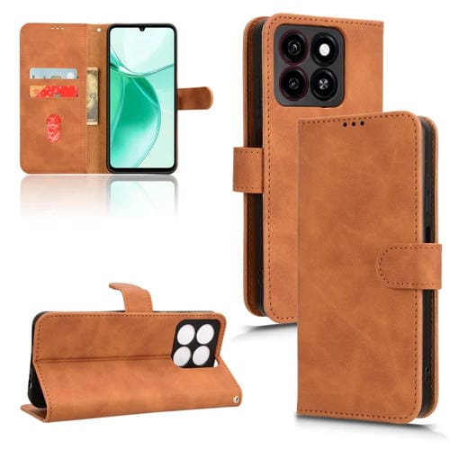 Funda de Cuero con Tapa Magnética para ZTE Blade A35/A55 (Marrón)