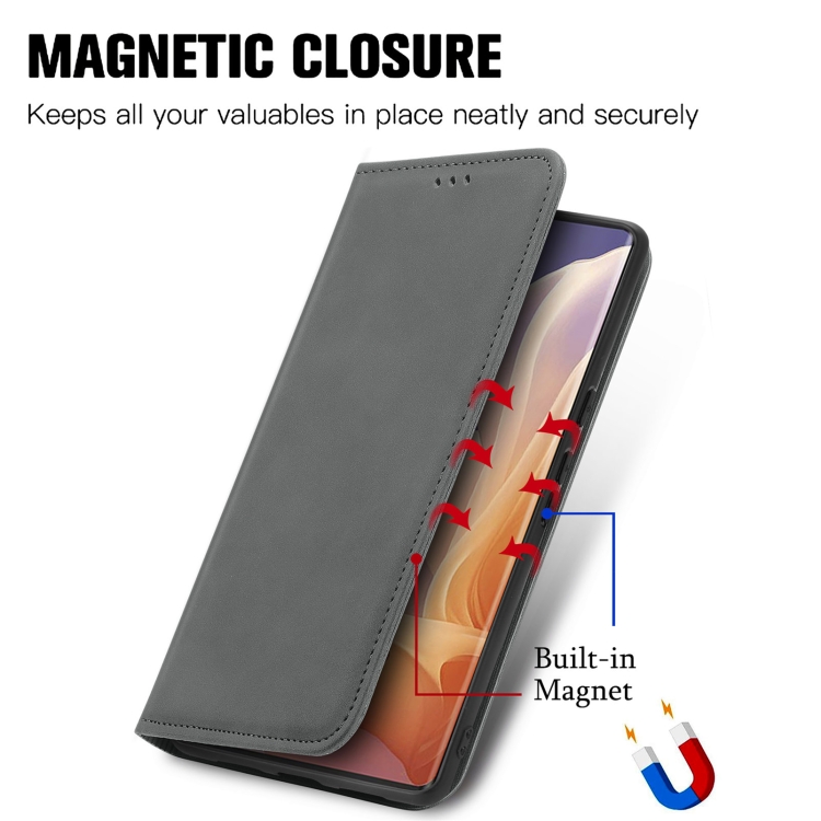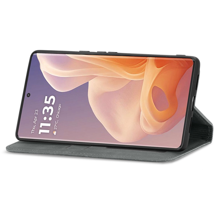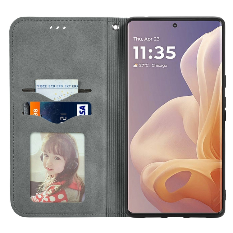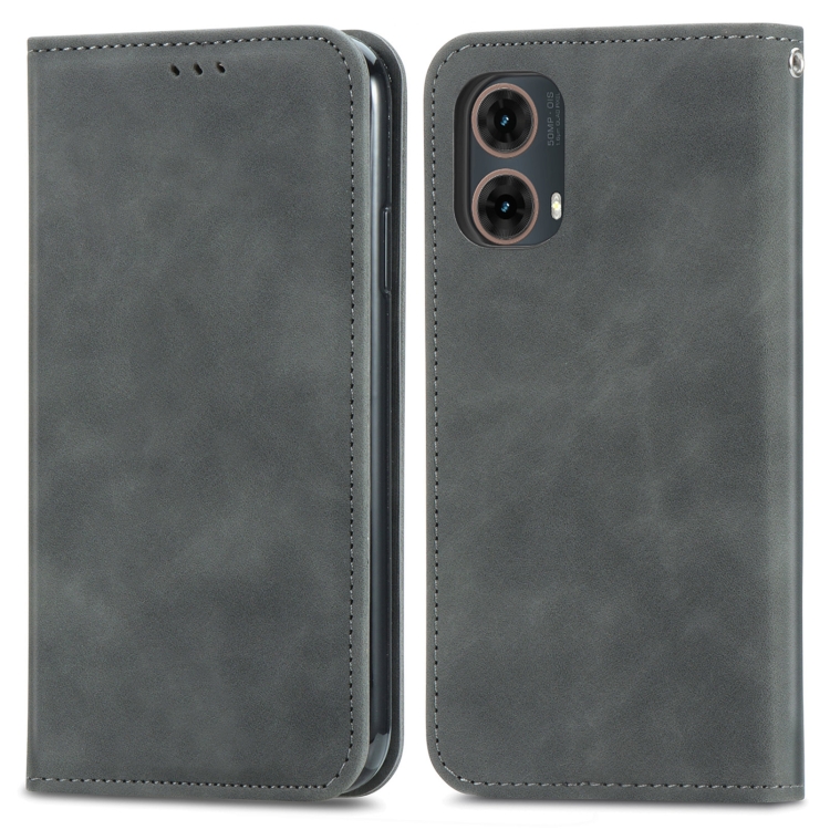 Funda de Cuero con Tapa Magnética para Motorola Moto G45 (Gris)