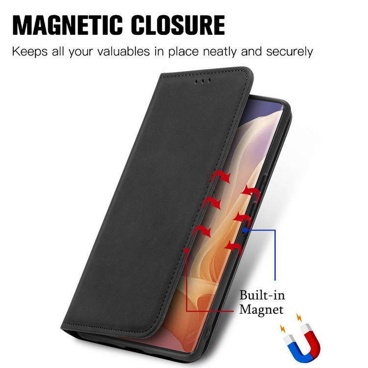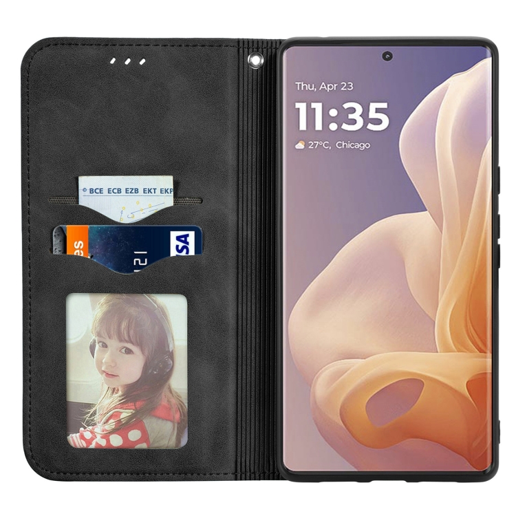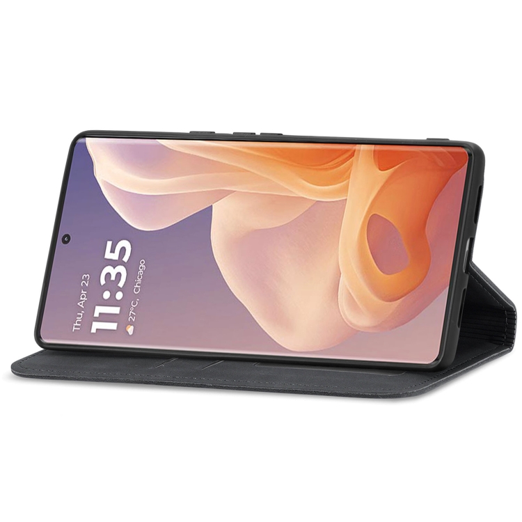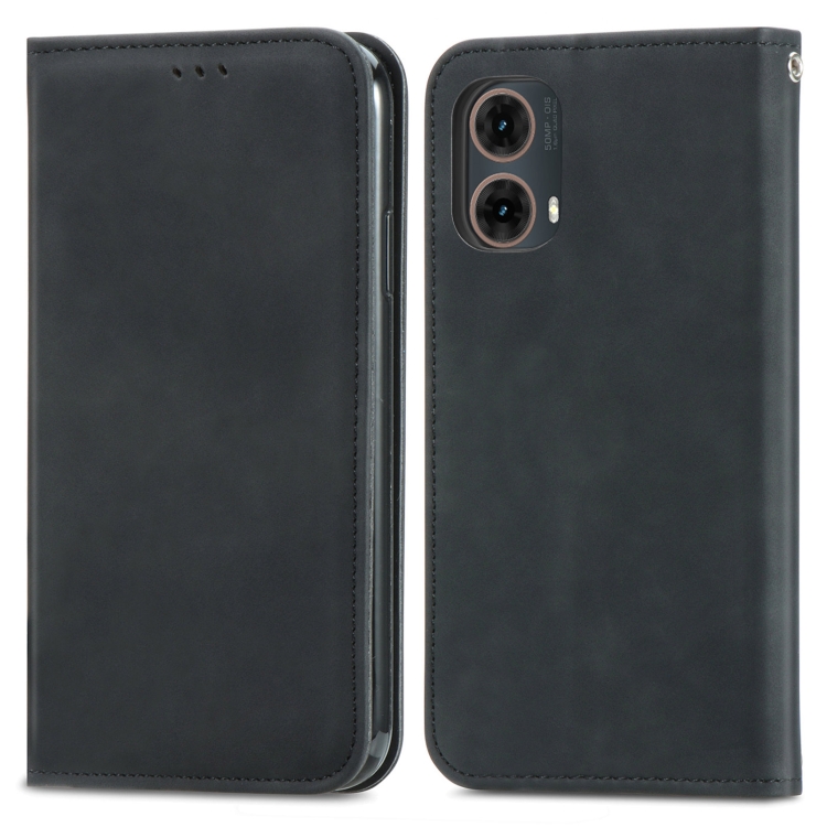Funda de Cuero con Tapa Magnética y Tacto Retro para Motorola Moto G45 (Negra)