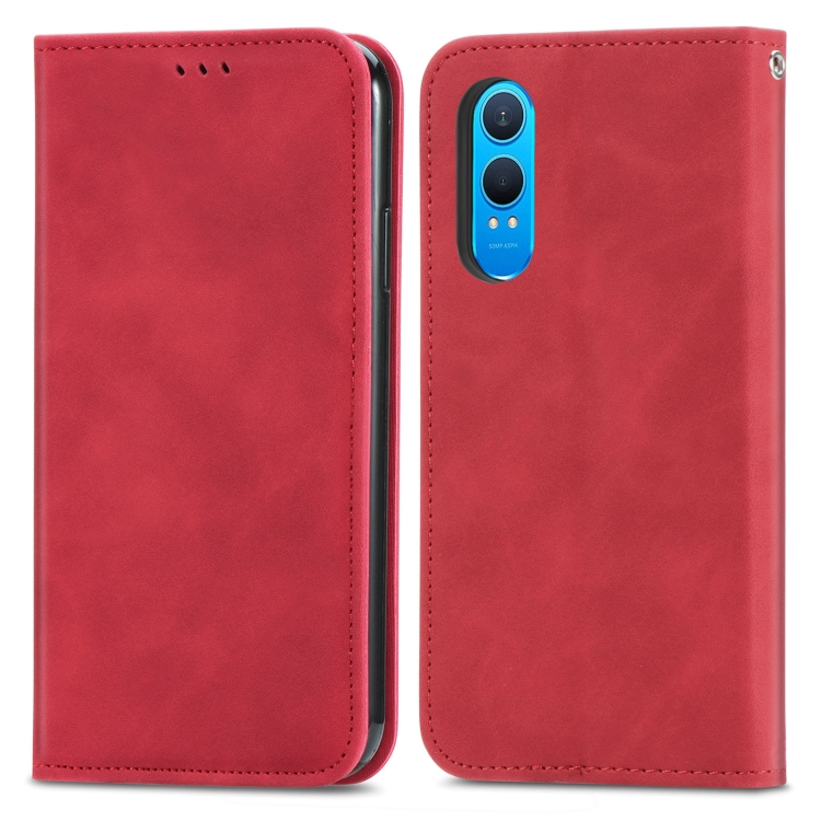 Funda de Cuero con Tapa Magnética y Tacto Retro para OnePlus Ce 4 Lite (Rojo)