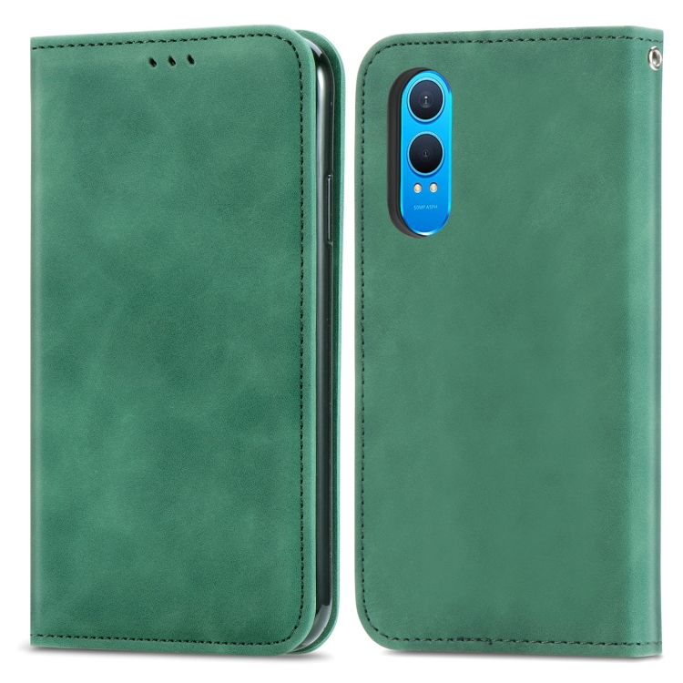 Funda de Cuero con Tapa Magnética y Tacto Retro para OnePlus Ce 4 Lite (Verde)