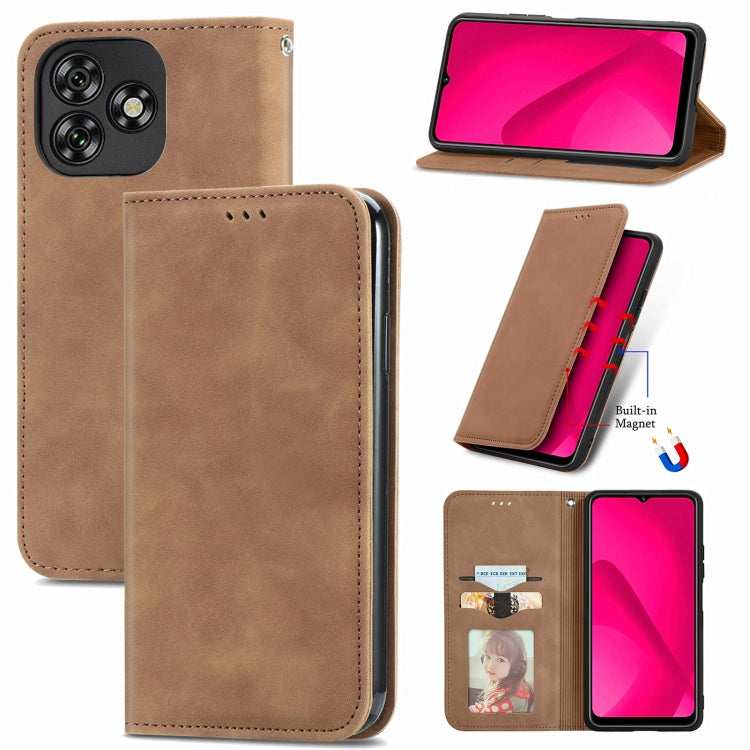 Funda de Cuero con Tapa Magnética para Oukitel C53 (Marrón)