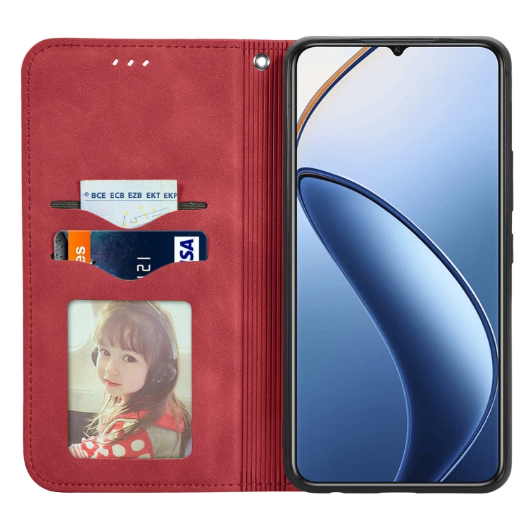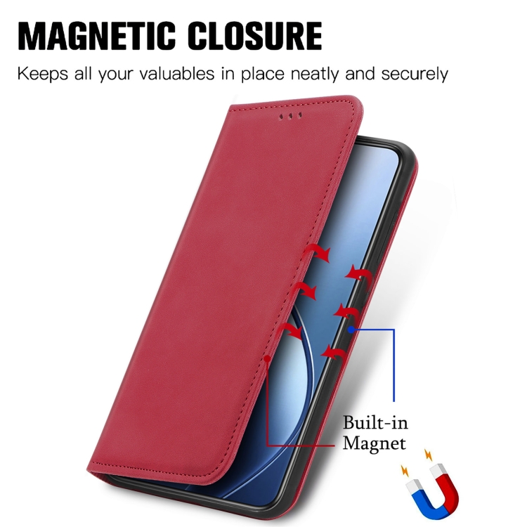 Funda de Cuero con Tapa Magnética y Tacto Retro para Oukitel C53 (Rojo)