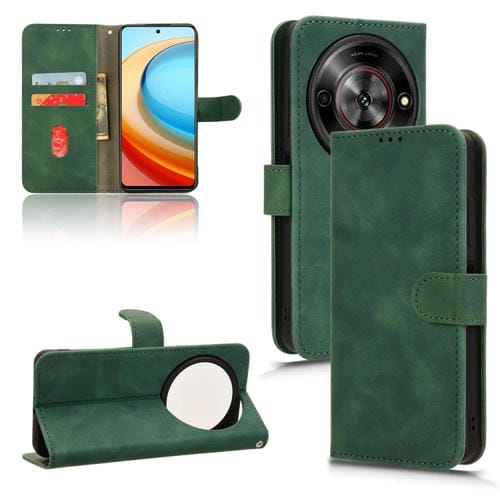 Funda de Cuero para ZTE Blade A75 5G con Tapa Magnética y Tacto Suave (Verde)