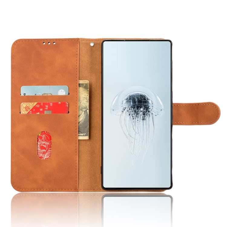 Funda de Cuero con Tapa Magnética para ZTE Nubia Red Magic 10 Pro (Marrón)