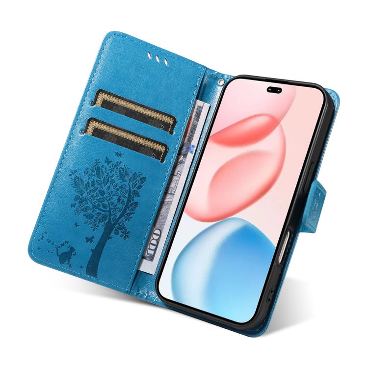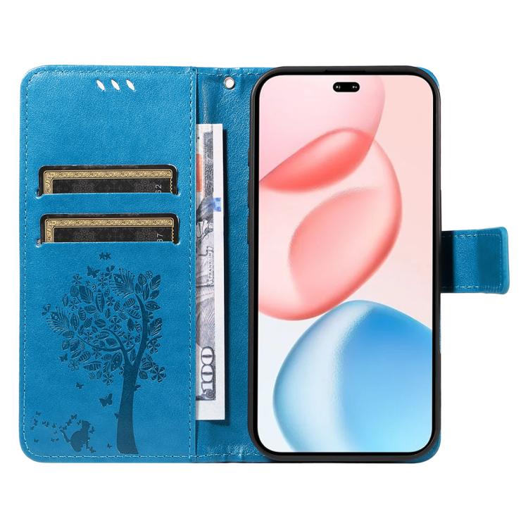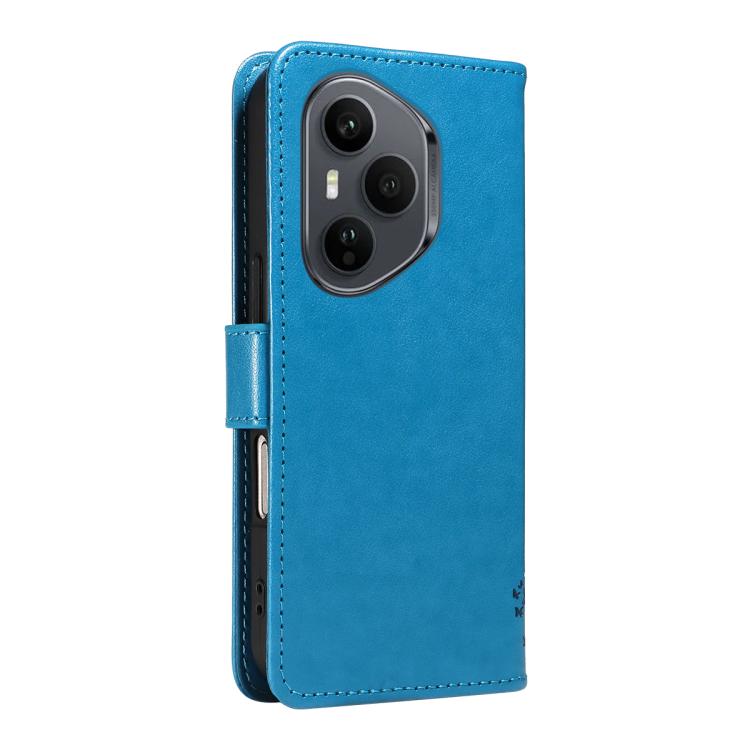 Funda de cuero con tapa para Honor 400 Pro Global (160,8 mm), diseño de árbol y gato (azul)