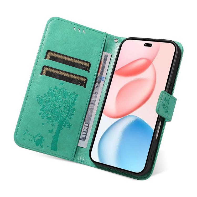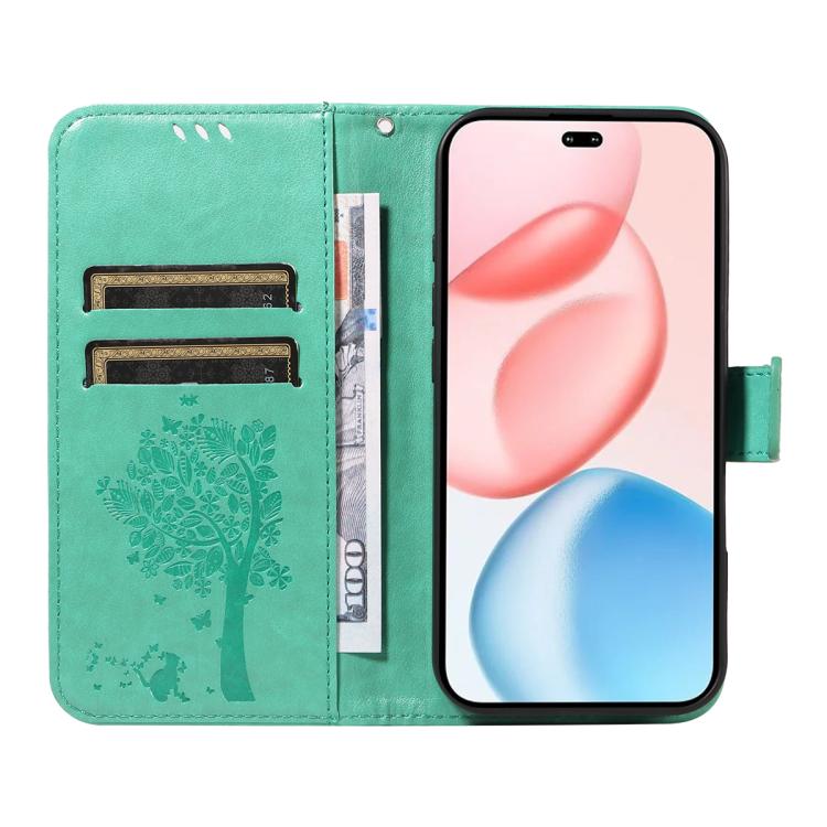 Funda de cuero con tapa para Honor 400 Pro Global (160,8 mm), diseño de árbol y gato (verde)