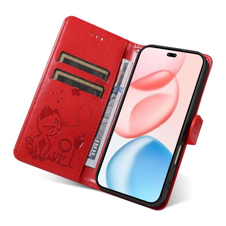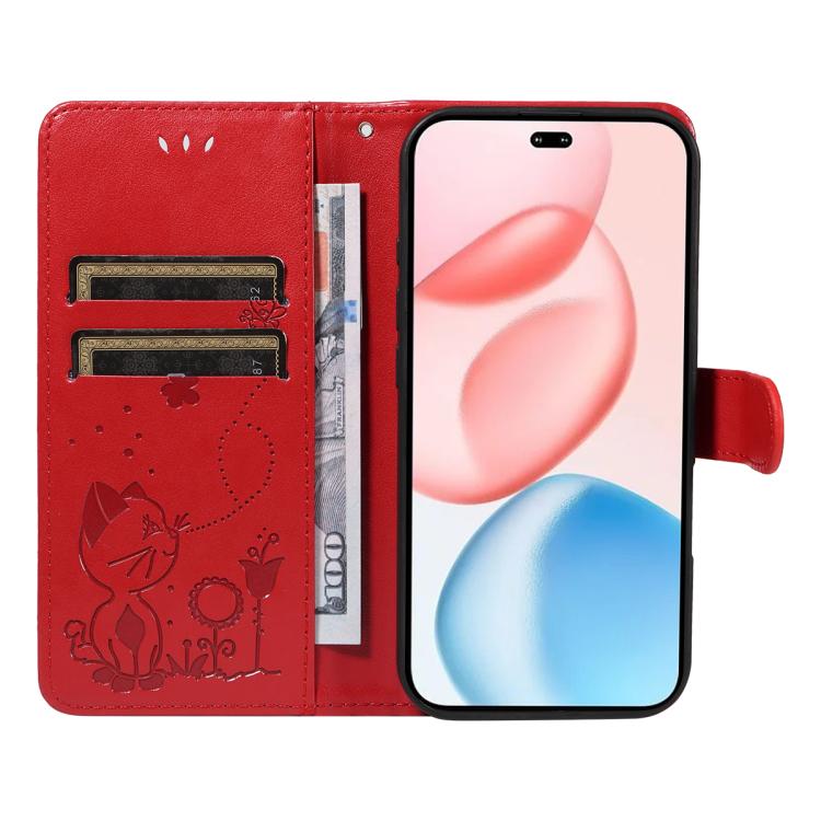 Funda de cuero con tapa para Honor 400 Pro Global (160,8 mm), diseño de gato y abeja (rojo)