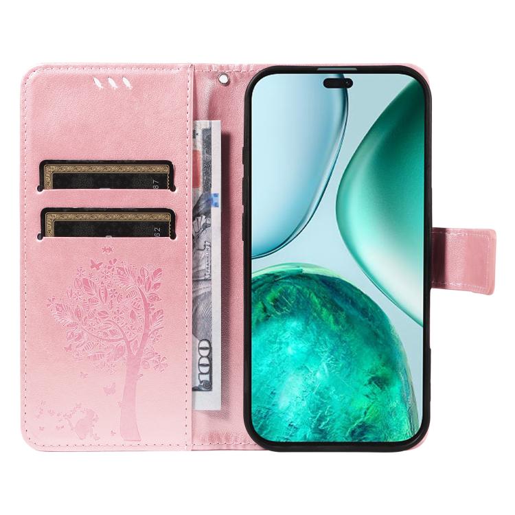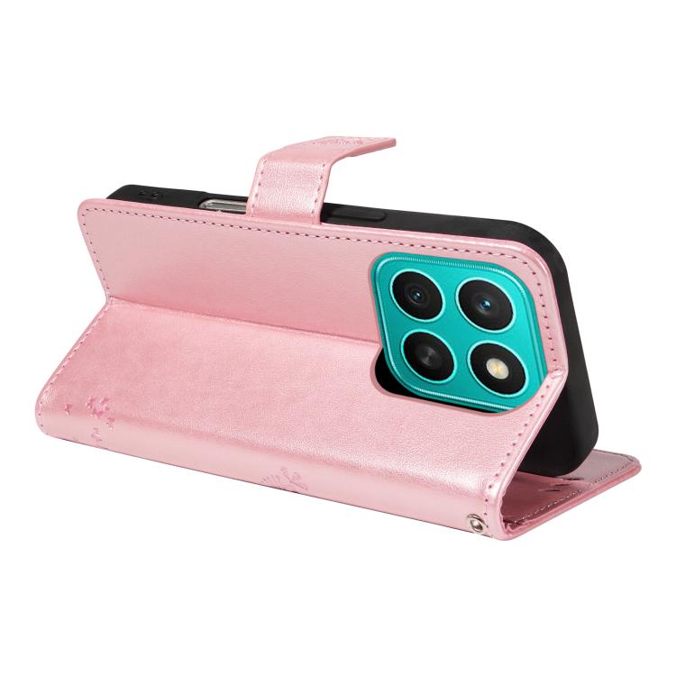 Funda de Cuero con Tapa para Honor X8C 4G Global con Diseño de Árbol y Gato (Oro Rosa)