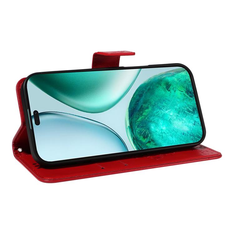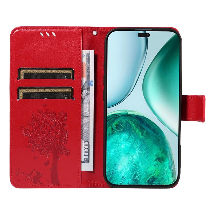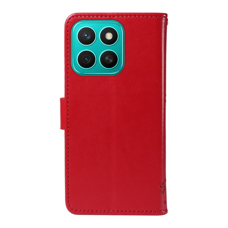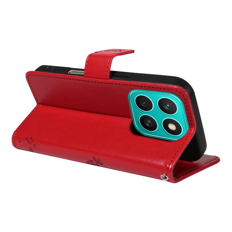 Funda de Cuero con Tapa para Honor X8C 4G Global con Estampado de Árbol y Gato (Roja)