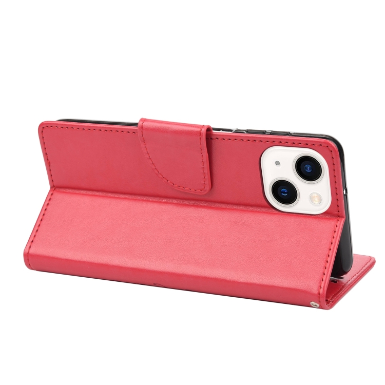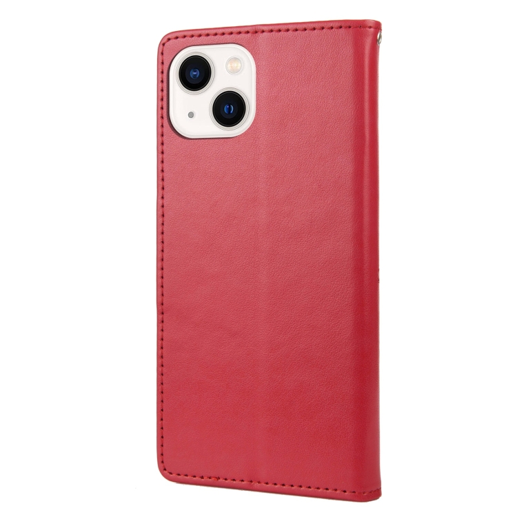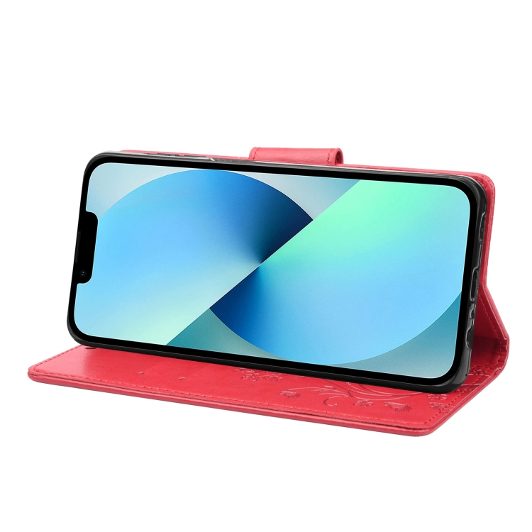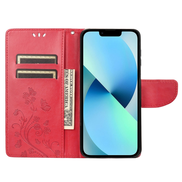 Funda de Cuero con Tapa para iPhone 14 Estampado Flores Mariposa (Rojo)