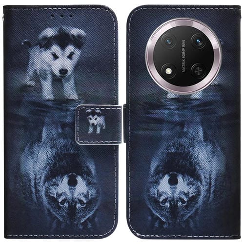 Funda de Cuero con Tapa para Honor X9C con Dibujo a Color (Lobo y Perro)