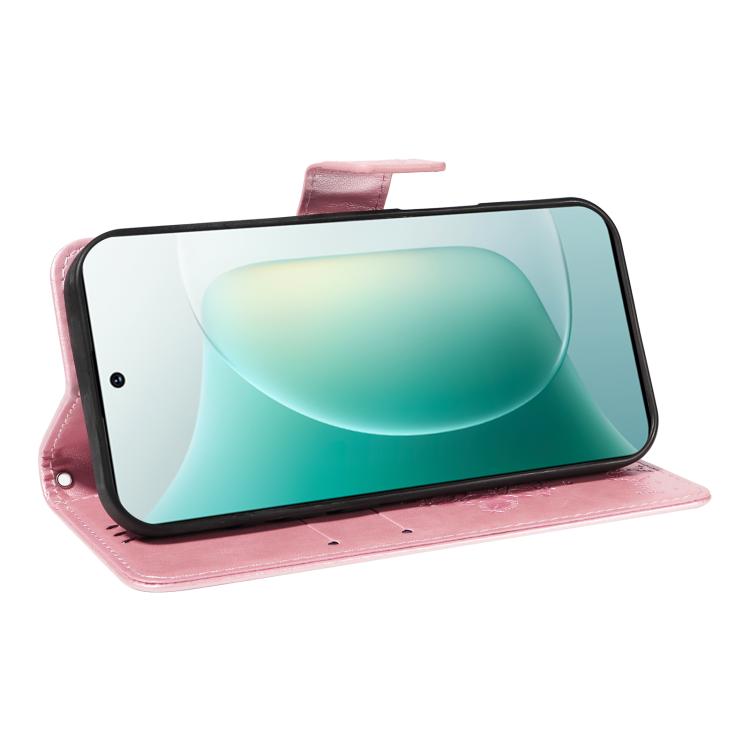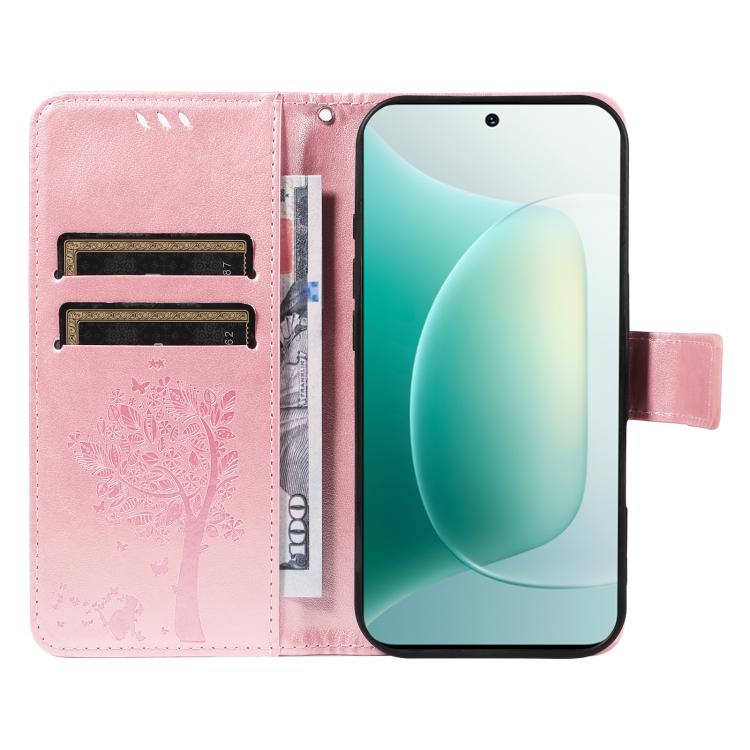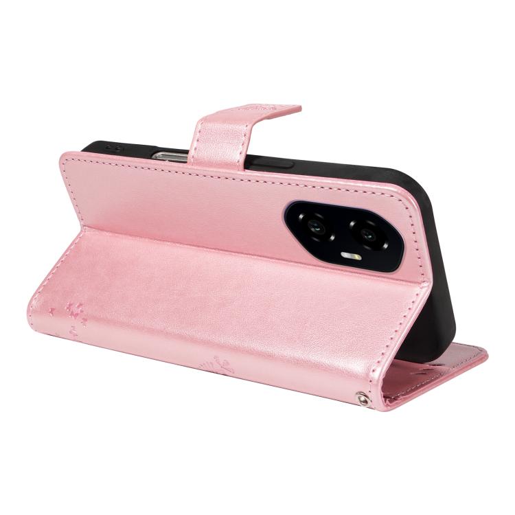 Funda de Cuero con Tapa para Honor 300 con Diseño de Árbol y Gato en Relieve (Oro Rosa)