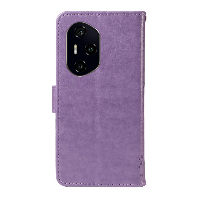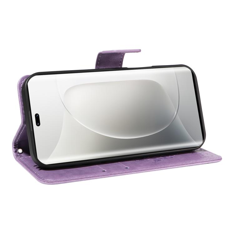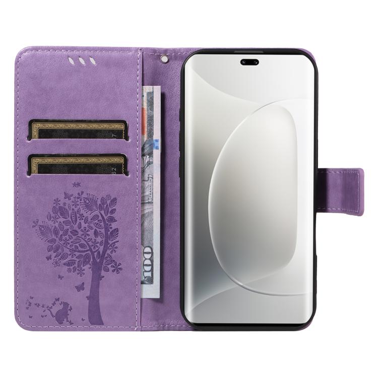 Funda de Cuero con Tapa para Honor 300 Pro/300 Ultra Diseño Árbol y Gato (Morado Claro)