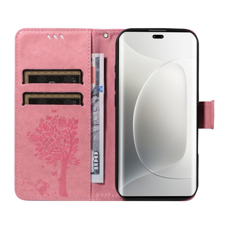 Funda de Cuero con Tapa para Honor 300 Pro/300 Ultra con Diseño Árbol y Gato (Rosa)