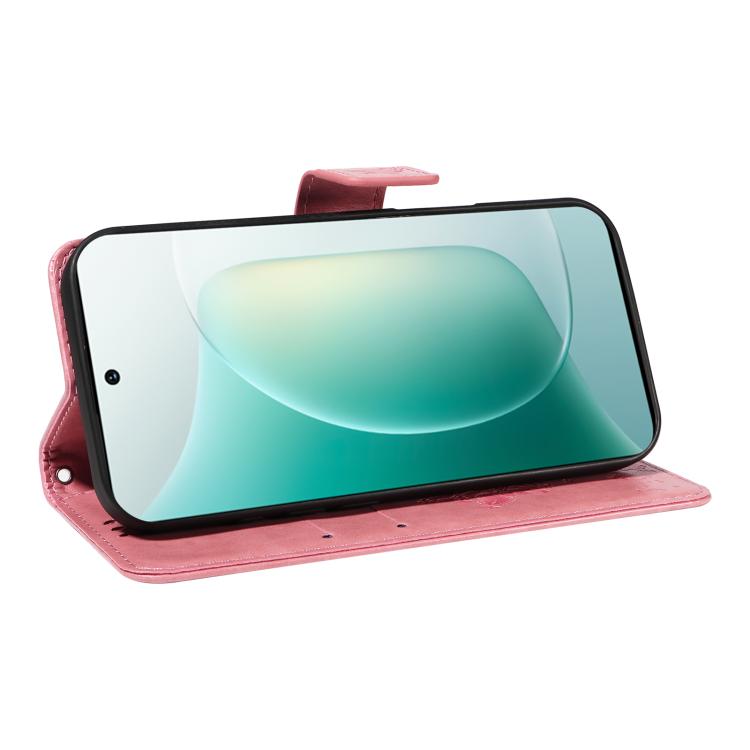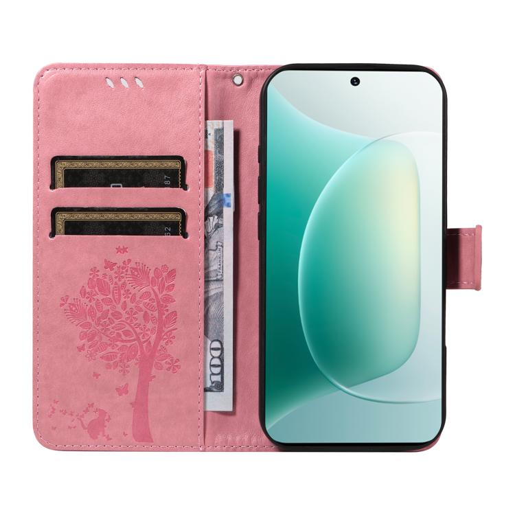 Funda de Cuero con Tapa para Honor 300 con Diseño de Árbol y Gato en Relieve (Rosa)