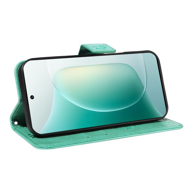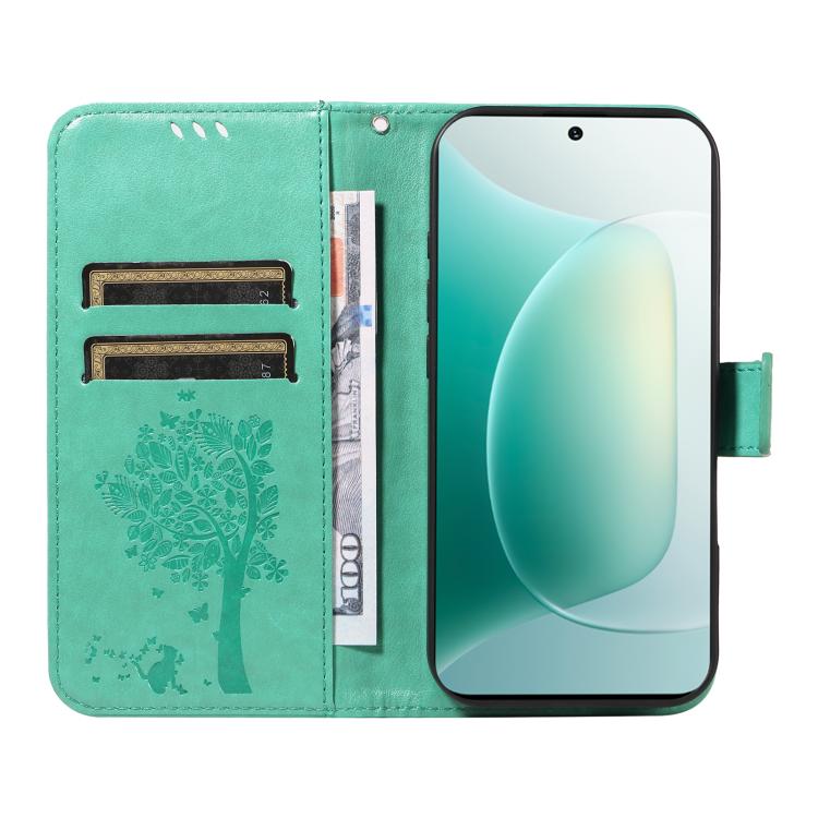 Funda de Cuero con Tapa para Honor 300 Diseño Árbol y Gato En Relieve (Verde)