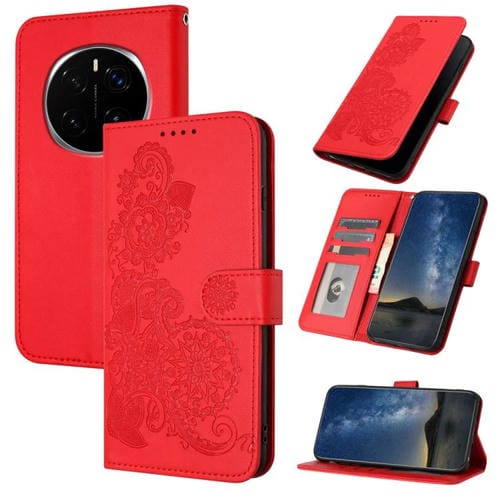Funda de Cuero con Tapa para Honor Magic7 Pro con Diseño Flor de Datura en Relieve (Rojo)