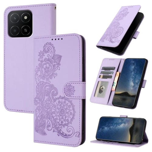 Funda de Cuero con Tapa y Relieve Flor de Datura para Honor X5B/X5B Plus (Morado)